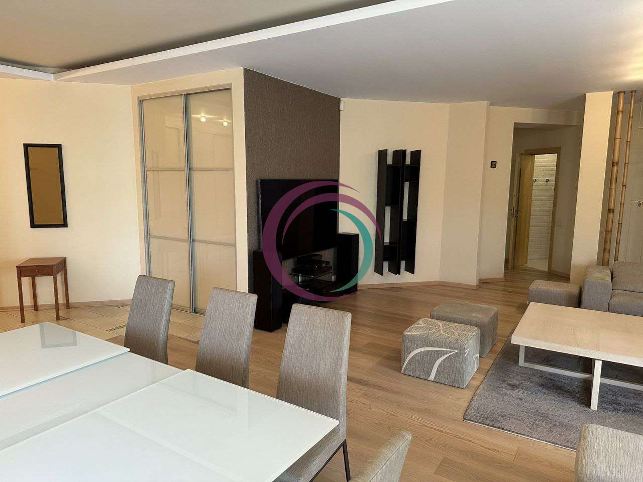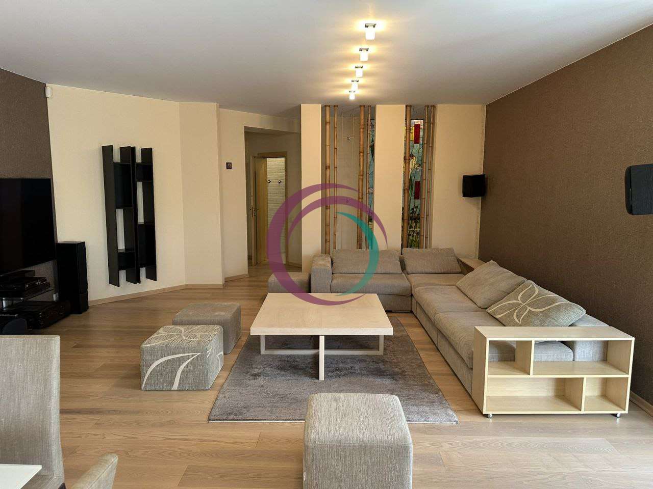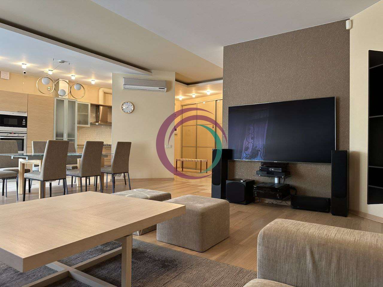 Квартира складається із: кухні-студії (~70 кв. м. ) та трьох кімнат (~22, 28 і 15 кв. м. ) Кожна кімната має свій гардероб, ванна кімната площею 21 кв. м. із сауною. Кухня має дві комори. Одну холодну для продуктів, друга для різних господарських речей. З кухні студії можна вийти на засклений балкон з виглядом у двір будинку. Дизайнерські батареї, підлога натуральна, дорога італійська сантехніка, плитка, італійські меблі. Вся вода, що подається в квартиру проходить через власну систему хім очистки.Квартира облаштована охоронною системою сигналізації. Все що є в квартирі залишається.