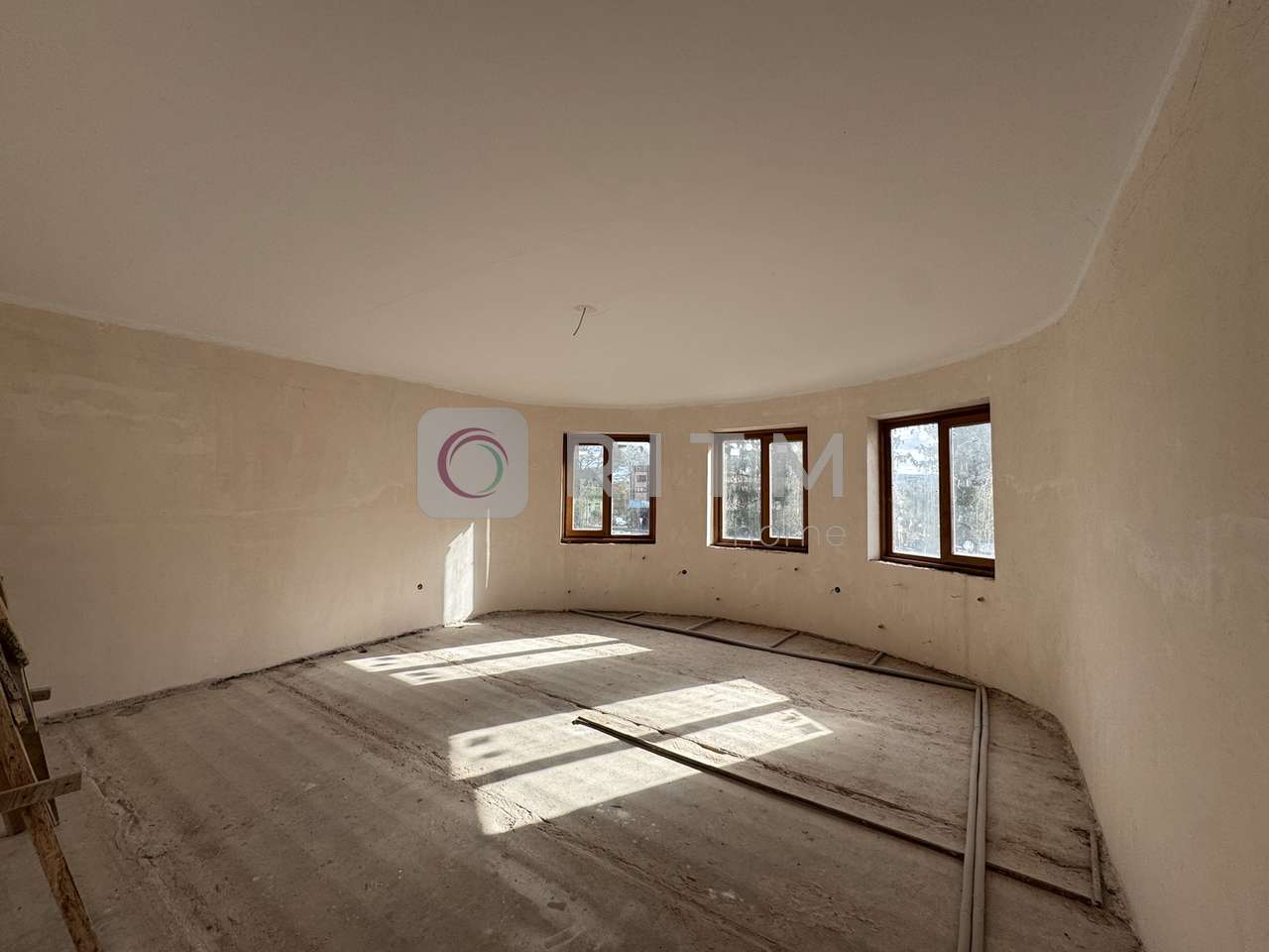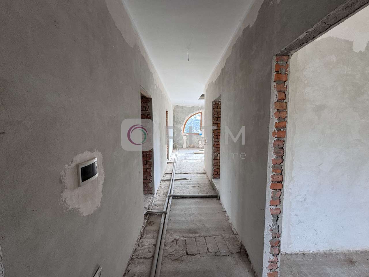 Перекриття бетонні, виконана електропроводка та сантехніка, стіни поштукатурені, частково пошпакльовані. Зроблена розводка опалення та каналізації.