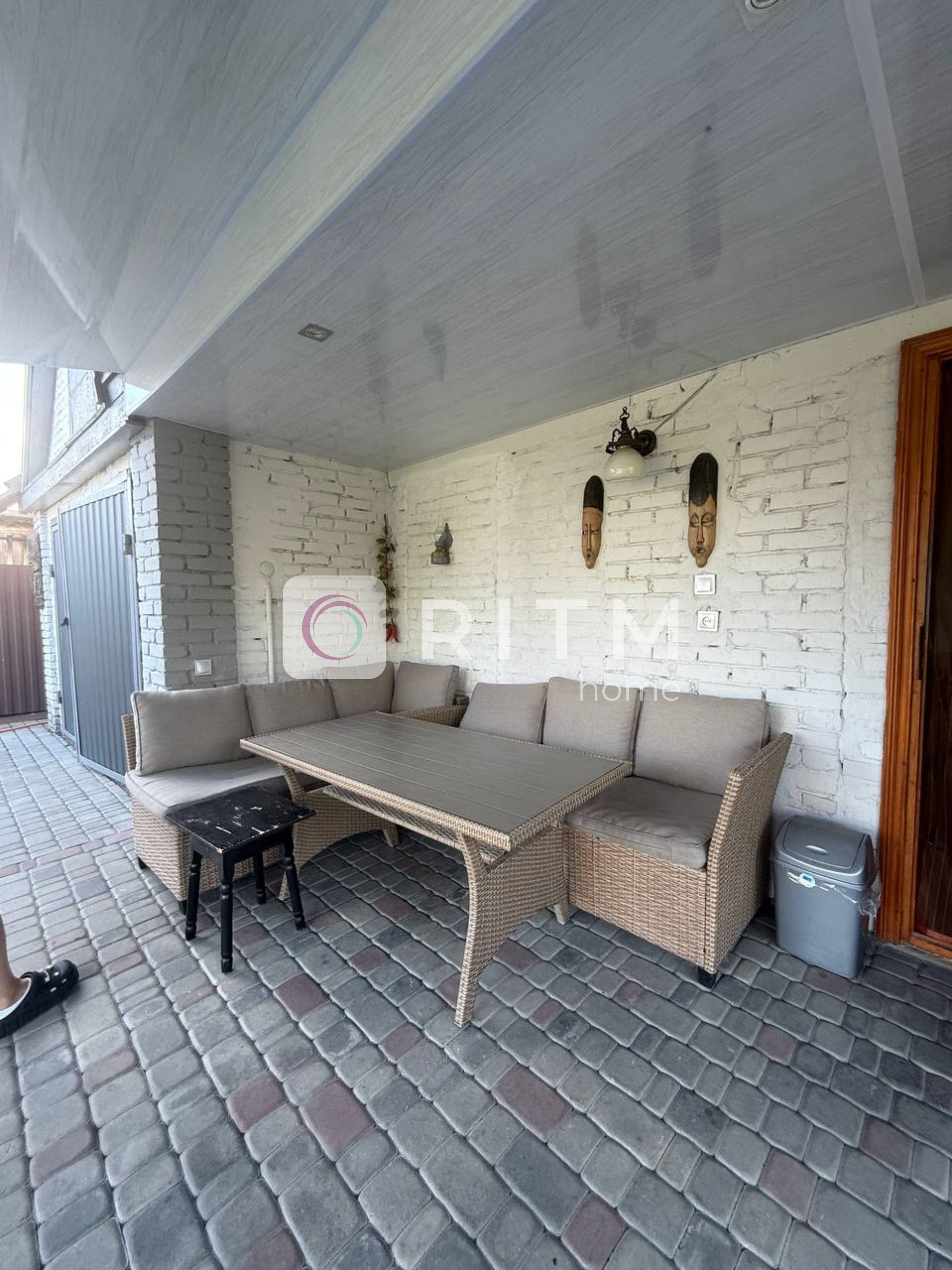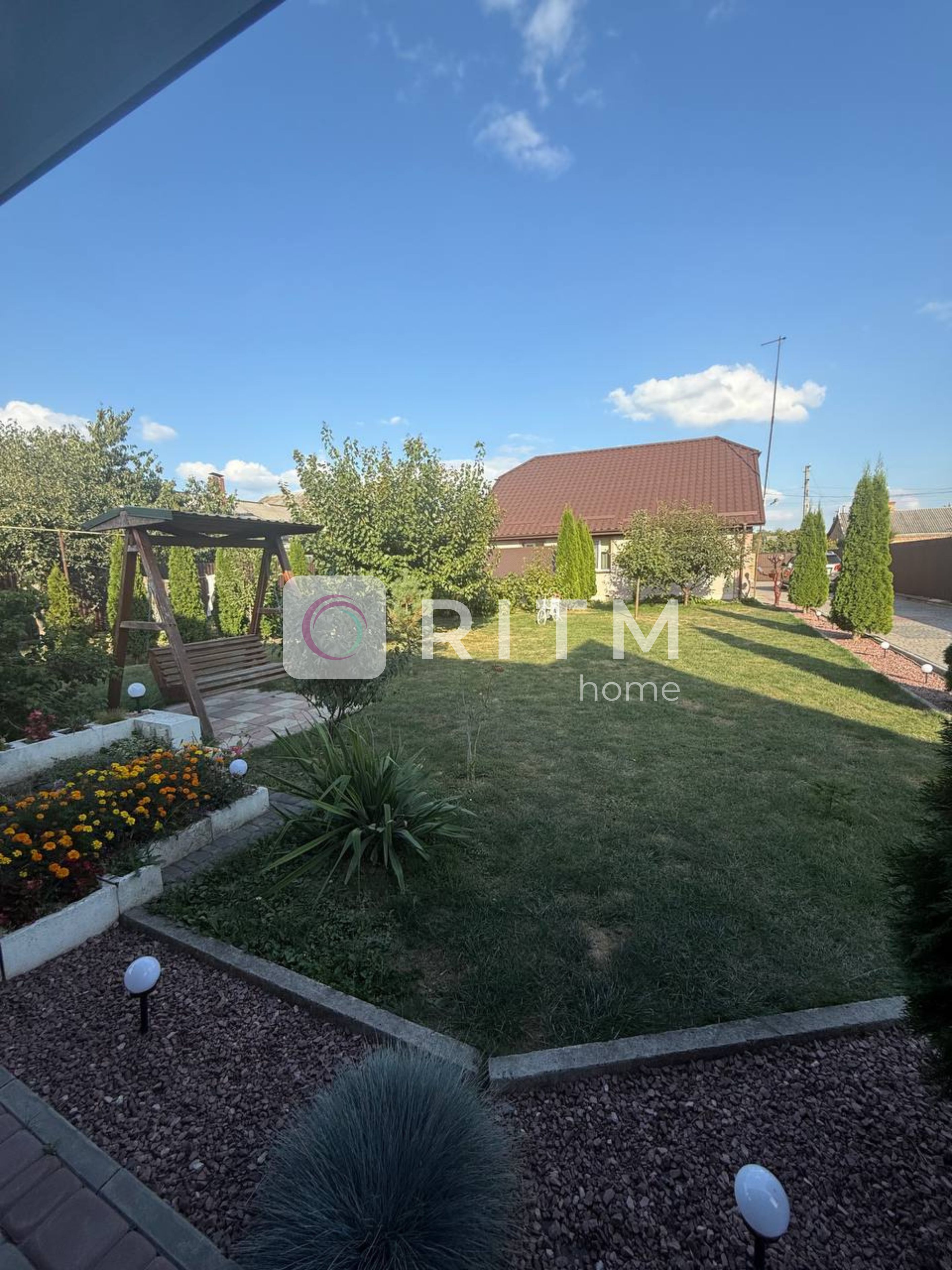 Облагорожена територія подвірку, викладена бруківка та невеликий сад.Простора літня тераса з накриттям та меблями, літня кухня повністю облаштована, гараж , кладовка, льох та мансардний поверх по всій площі будинку.