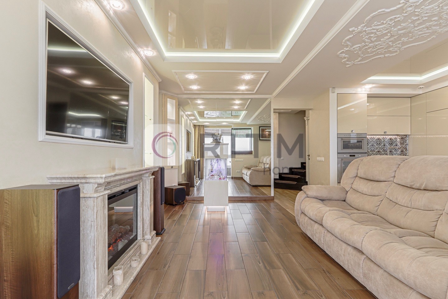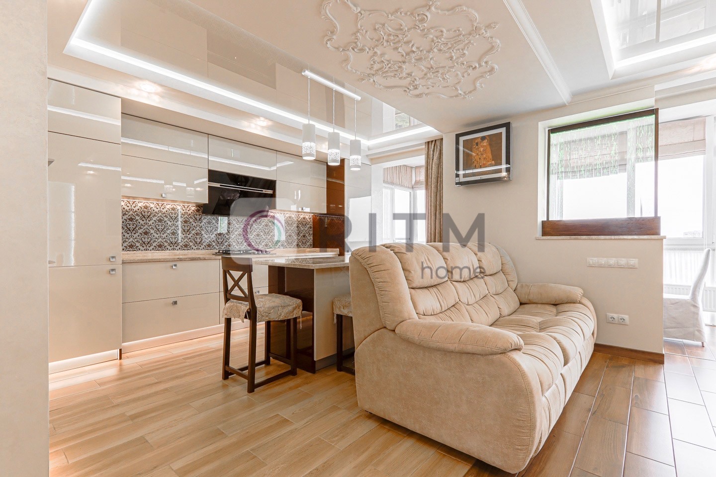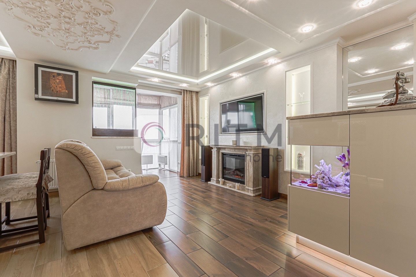 Додатково: домашній кінотеатр, багаторівневе освітлення, панорамний французький балкон + 2 відкриті балкони з виглядом на місто, декоративний сухий акваріум та бульбашкова панель.