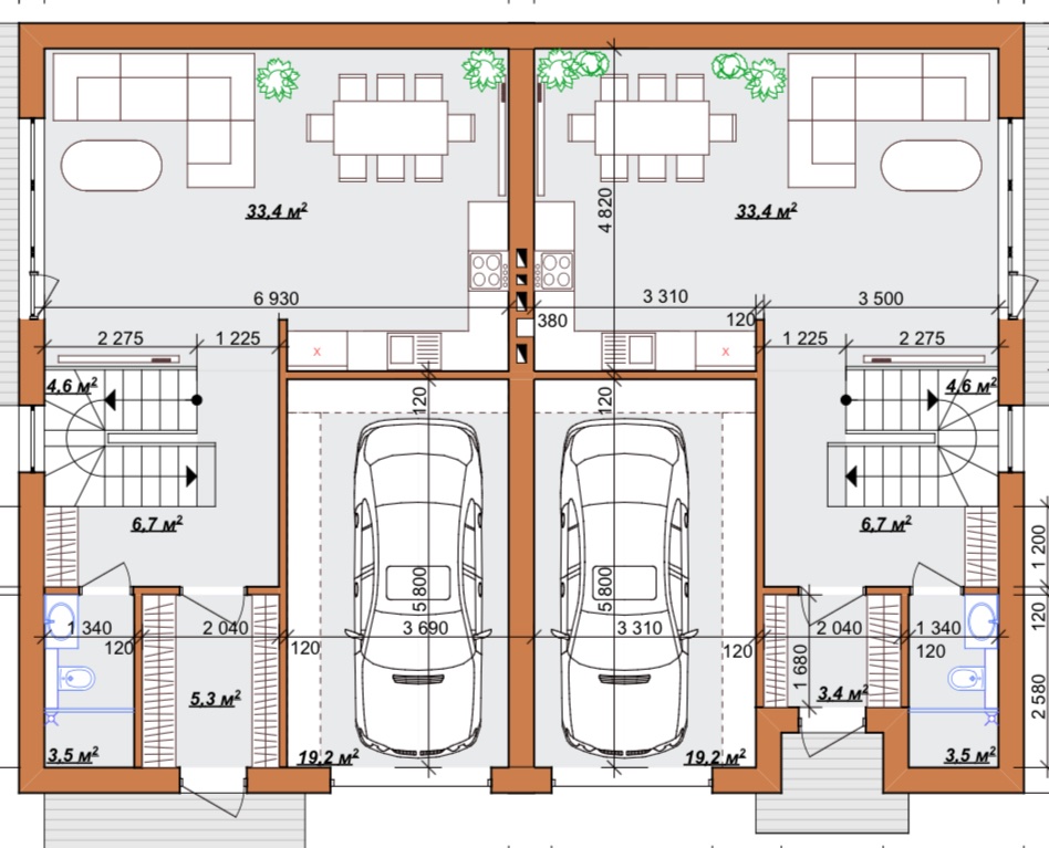 Закрита територія, на якій розташовано всього 3 будинки. Дуплекси готові,збудовані та накриті. З усіма підведеними комунікаціями.