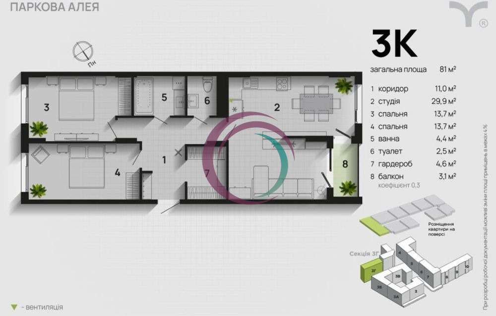 - 3 кімнати