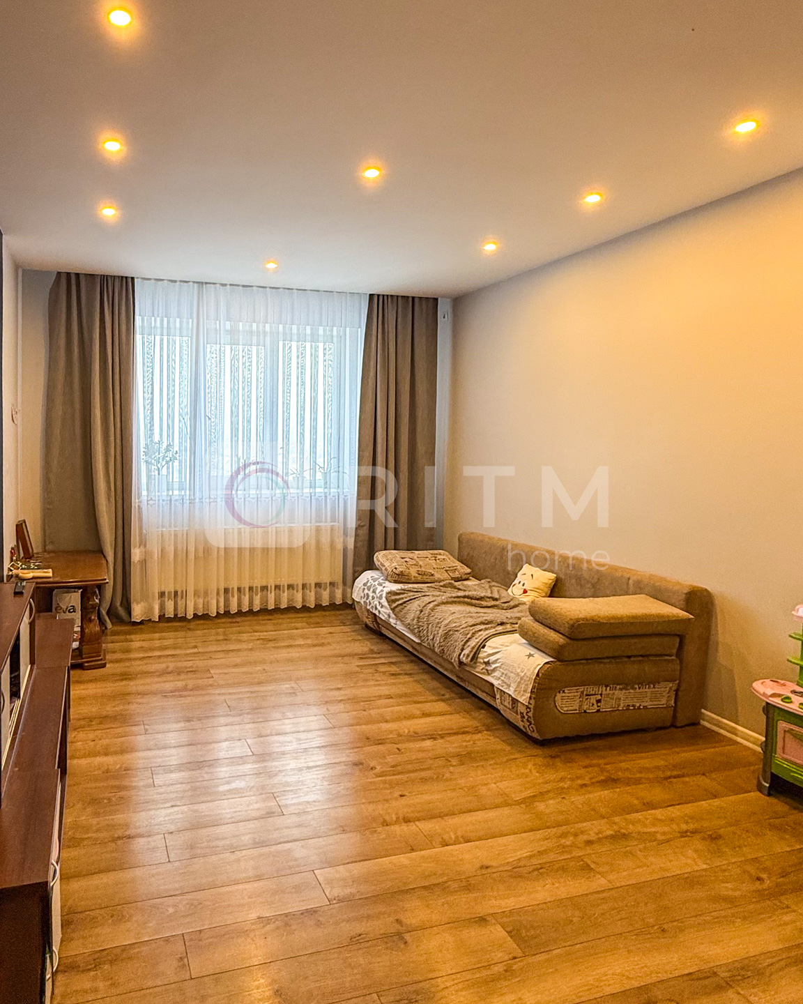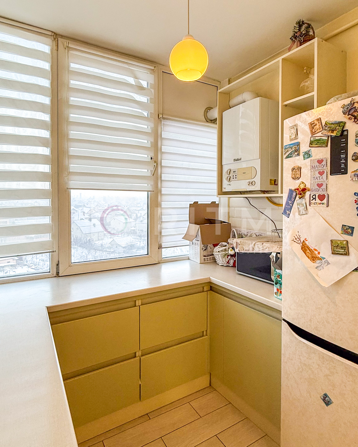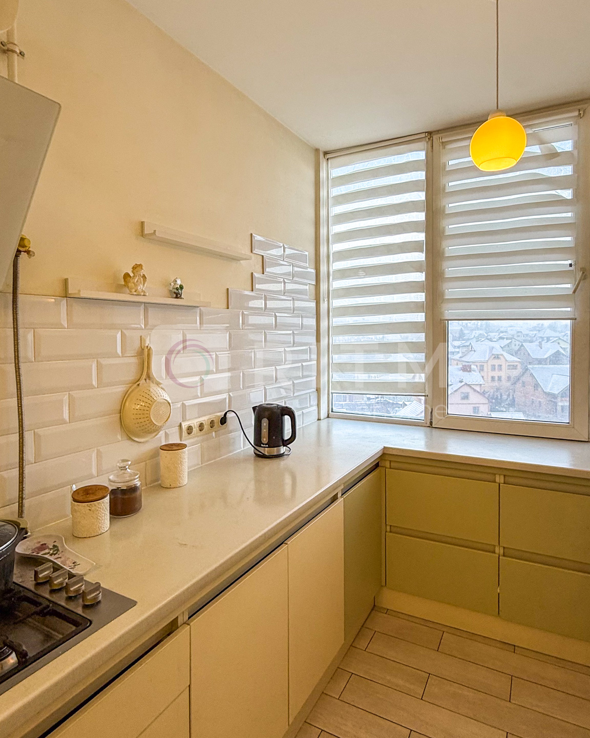 Квартира дуже світла, з великими вікнами, з яких відкривається приємний краєвид на приватний сектор. Це вдалий варіант для тих, хто шукає комфортне, якісне житло