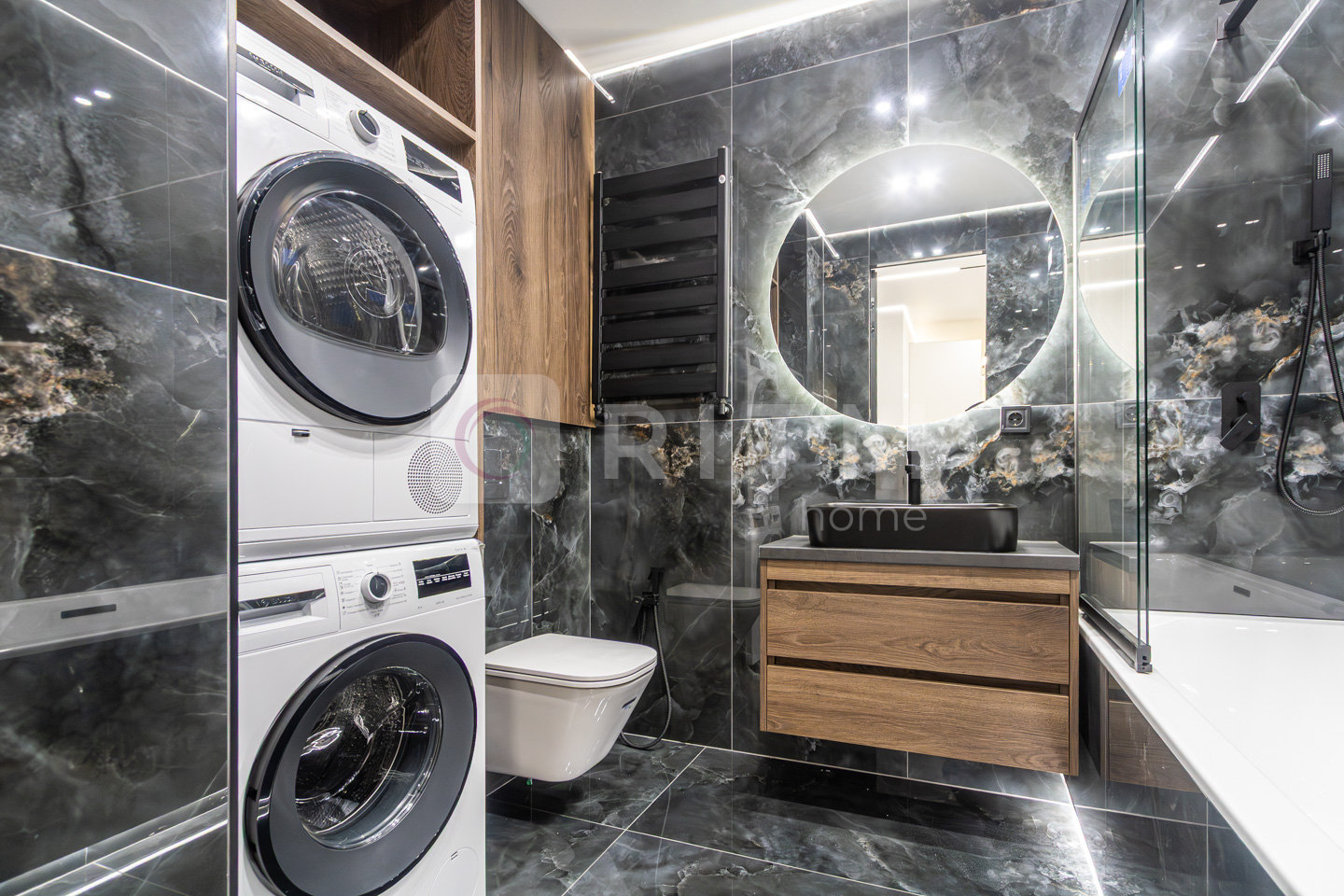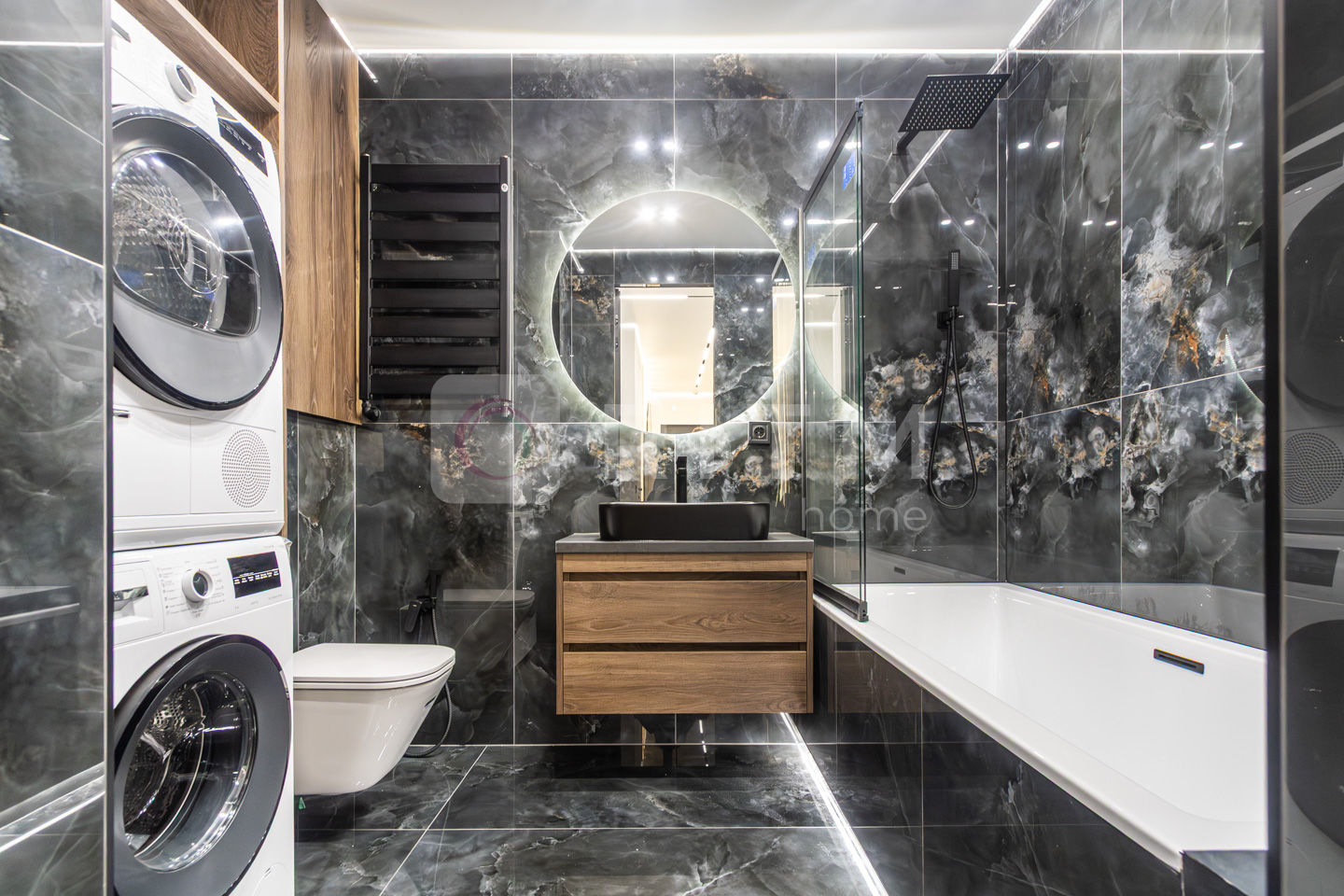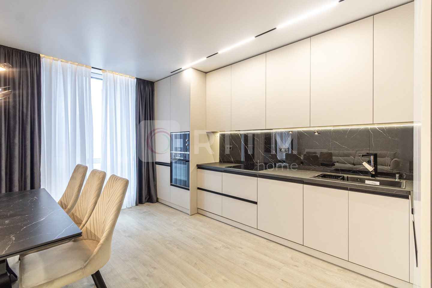 По всій квартирі встановлено підігрів підлоги. Продумане трекове та магнітне освітлення додає сучасності інтер’єру.