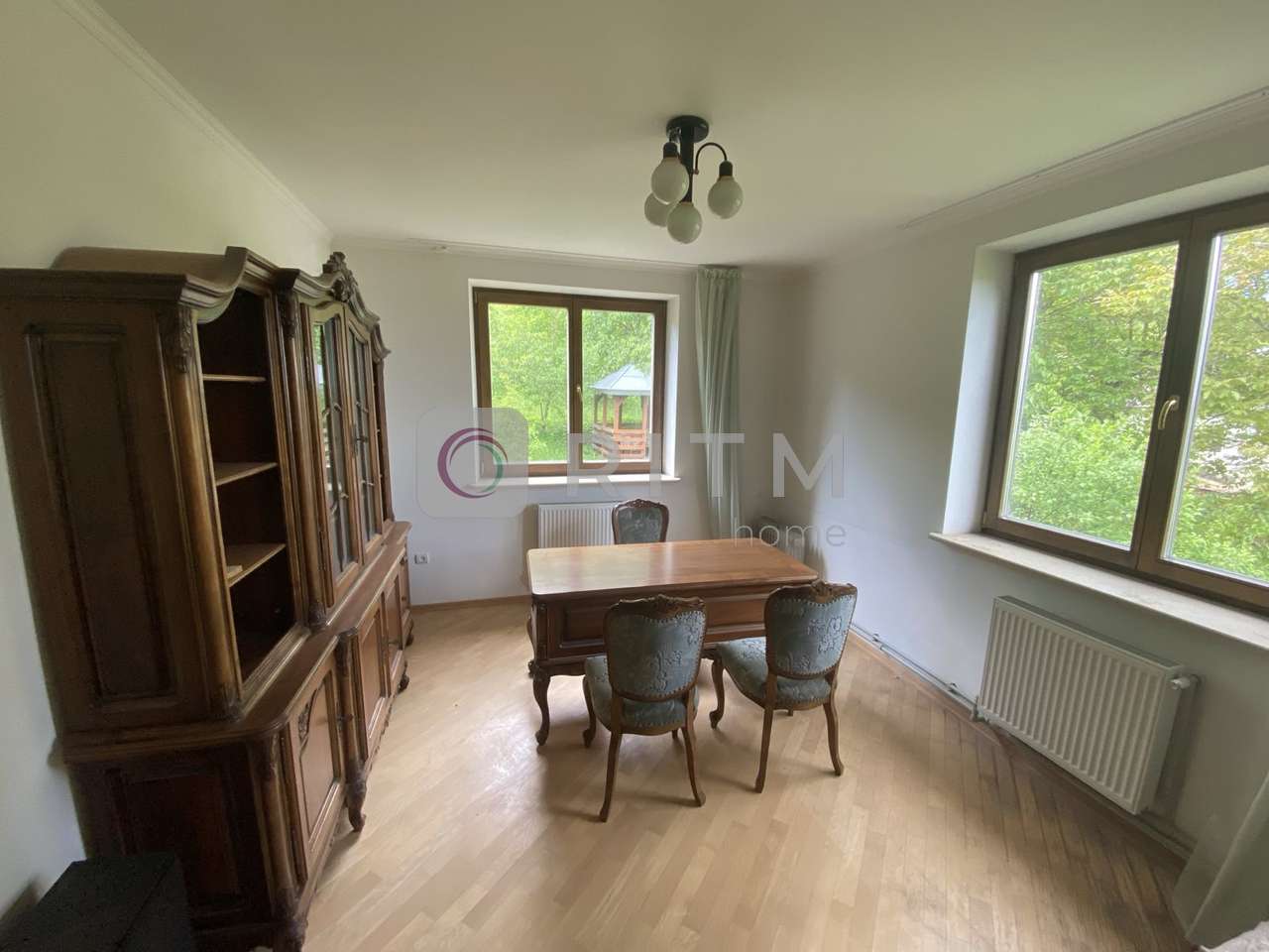 Окремої уваги заслуговує зона релаксу — сауна з басейном, яка стане чудовим місцем для відновлення сил у будь-яку пору року. У будинку продумане планування: є три спальні, дитячі кімнати, кабінет для роботи або навчання, простора кухня, два санвузли та кімнати для відпочинку. Інтер’єр виконаний із використанням натуральних матеріалів — дубові сходи, підлога та двері, дерев’яні вікна зі склопакетами створюють теплу та затишну атмосферу.