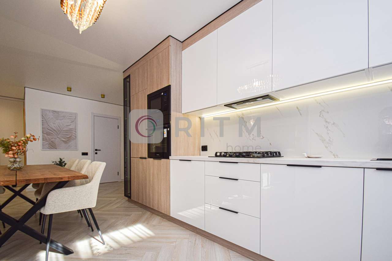 Авторський проект , квартира знаходиться в центрі міста у цегляній новобудові . Простора кухня - студія , гардеробна, ванна кімната, дві окремих спальні , 3 засклених балкони . Змішувач прихованого монтажу , якісний ремонт . Індивідуальне газове опалення .